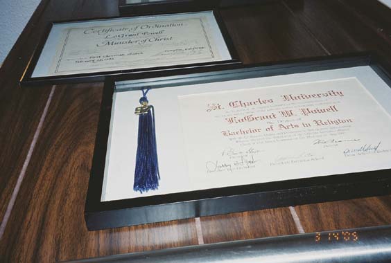 Mom's Degrees Mounted in the Entryway.